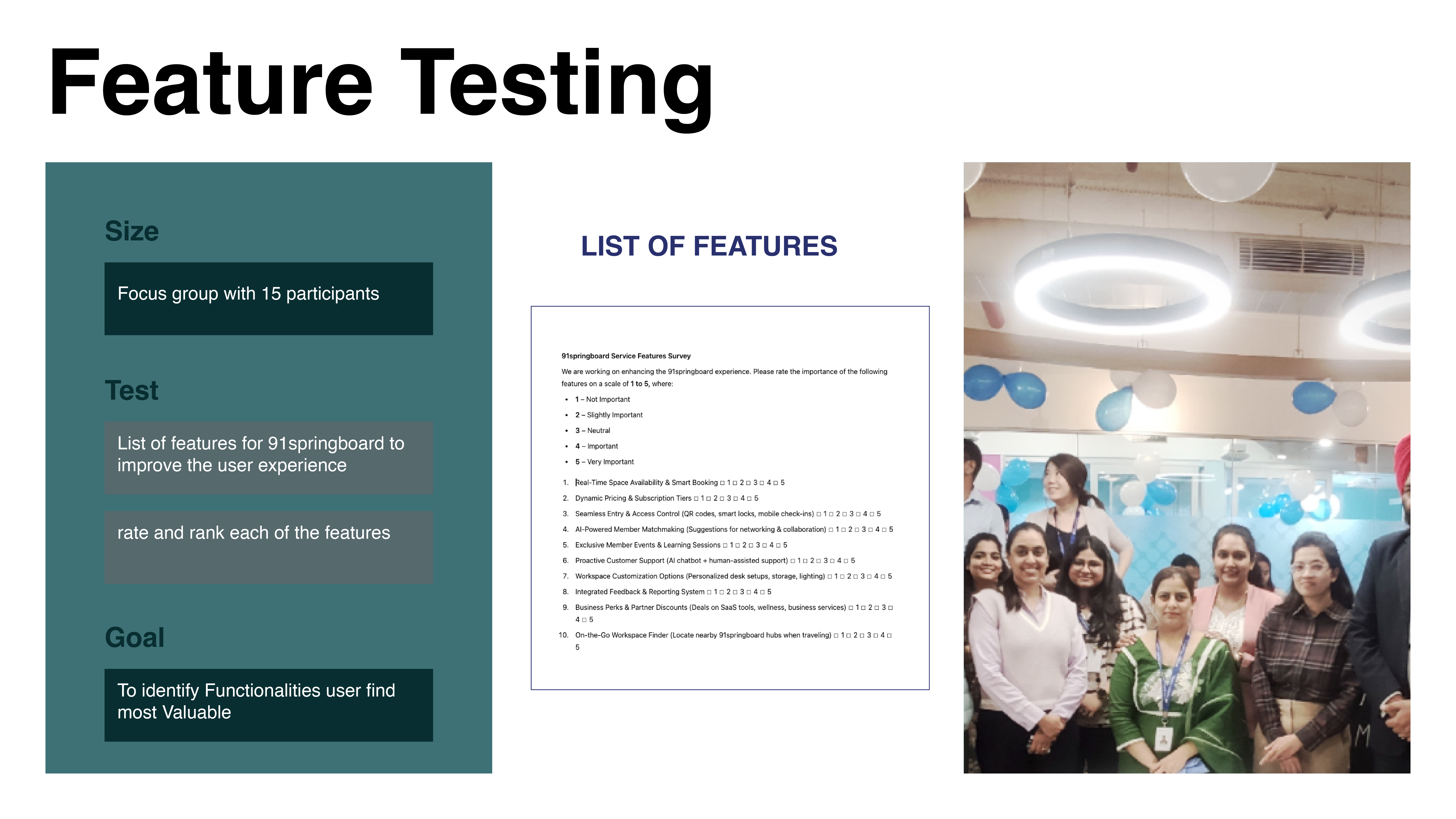 Stakeholder Analysis, Feature Testing, Service Refinement