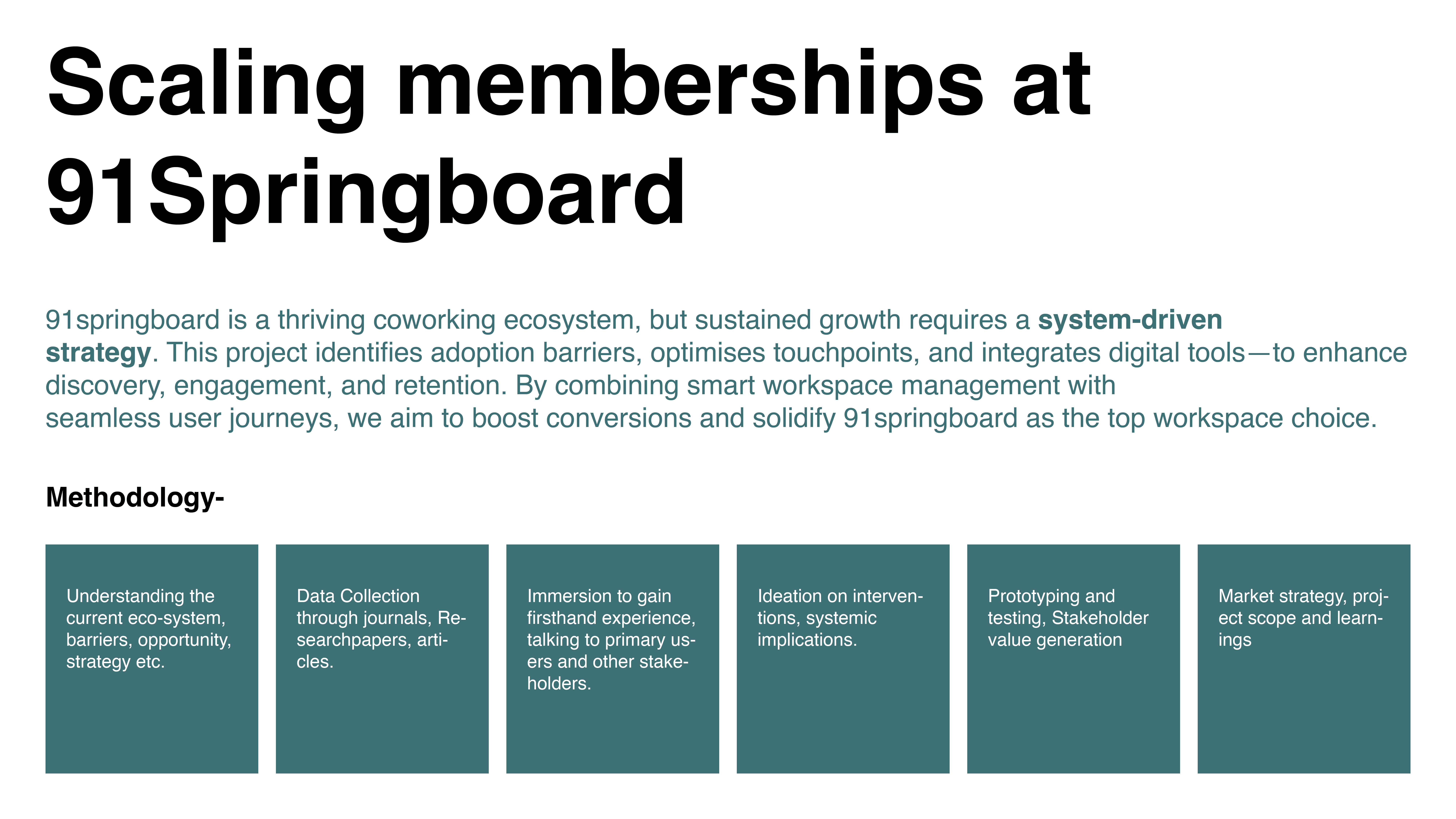 This Project started as part of my final graduation project in collaboration with 91springboard which focuses on value generation for 91springboard users and other stakeholders by utilising a design approach.