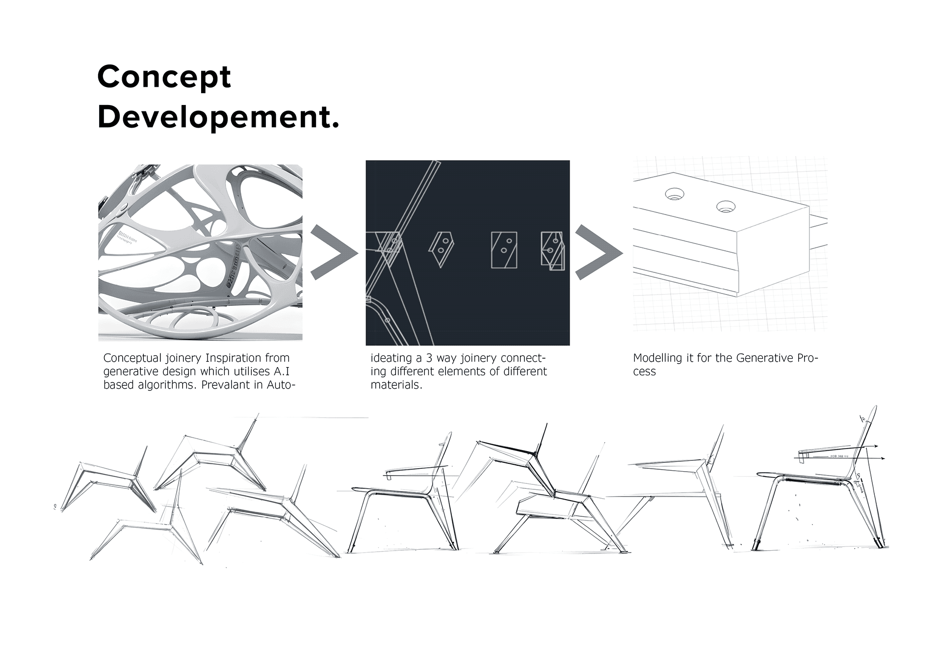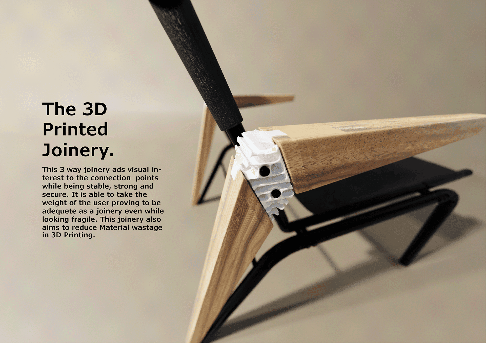 Designing an arm chair using Generative Design. Utilising the technology to decrease the amount of materials used in joineries as well as maintaining the strength by creating simulations and stress tests.